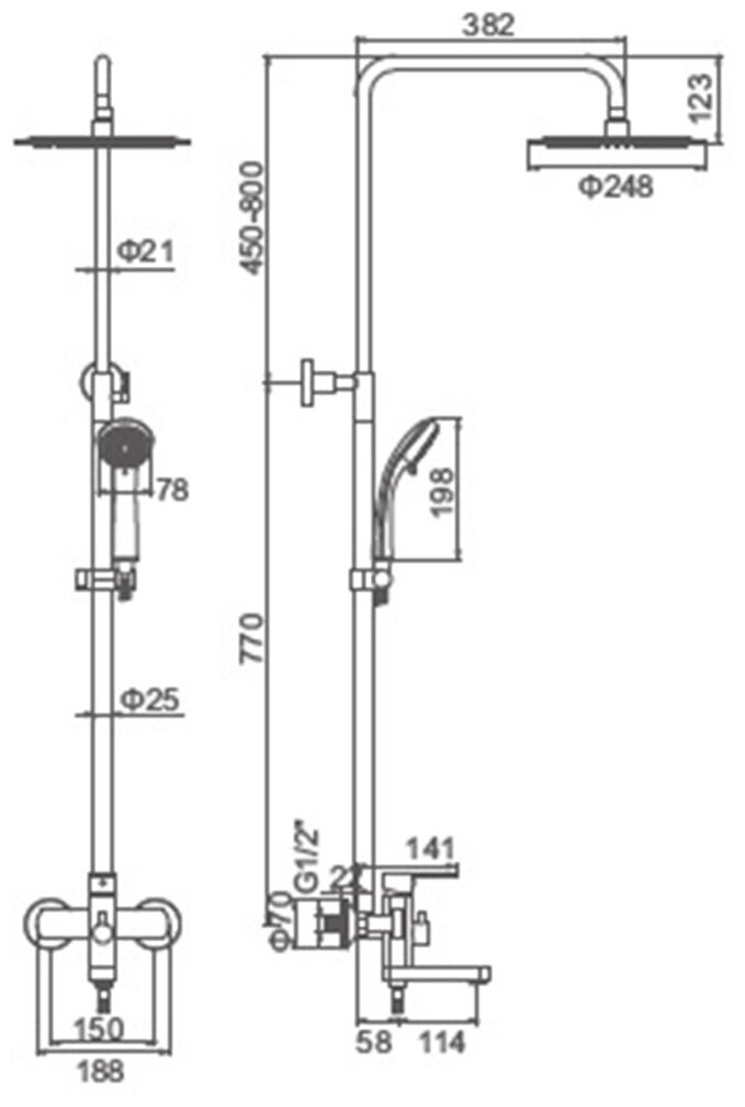 | Комплектация | верхний душ |
