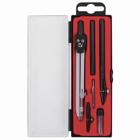Готовальня BRAUBERG "Architect", 6 предметов: циркуль, рейсфедер + вставка + держатель, игольная вставка, грифель