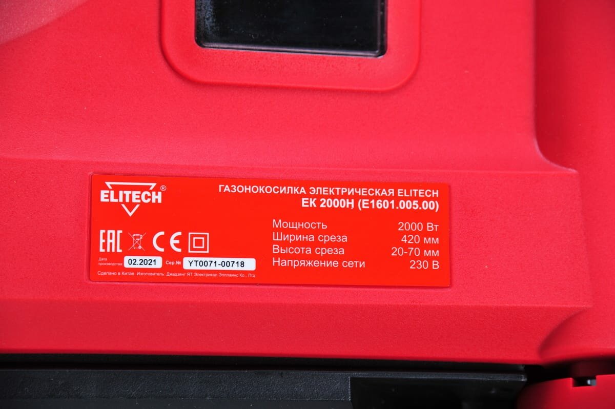 Газонокосилка ELITECH ЕК 2000Н, E1601.005.00 интересное: