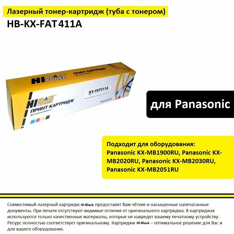 Картридж KX-FAT411A Hi-Black подходит для Panasonic KX-MB1900 2000 2010 2020 2030 тонер 2000стр