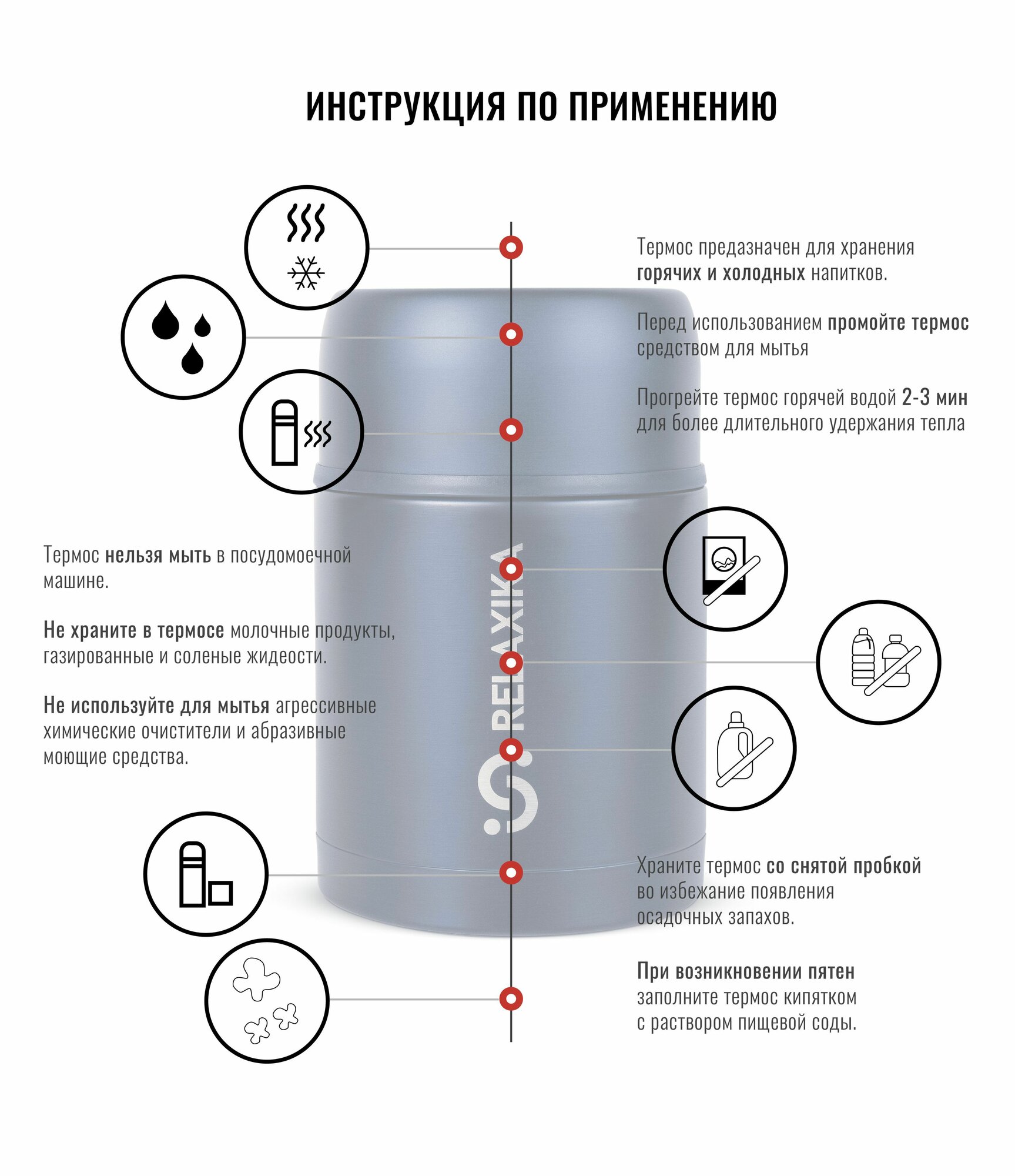 Термос универсальный (для еды и напитков) Relaxika R201.800.1 (0,8литра), стальной