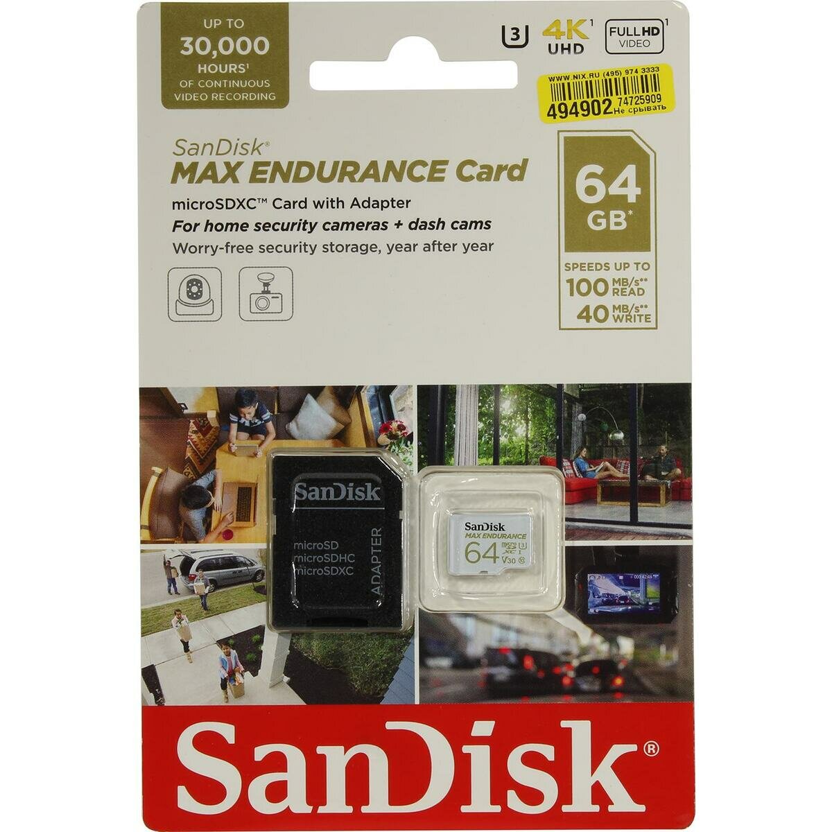 Купить Карта памяти microSD SanDisk Max Endurance 64Гб Class 10