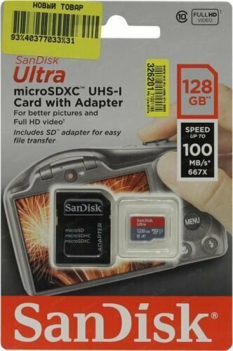 Карта памяти SanDisk microSDXC 128 ГБ Class 10, V30, UHS-I, R/W 100/40 МБ/с