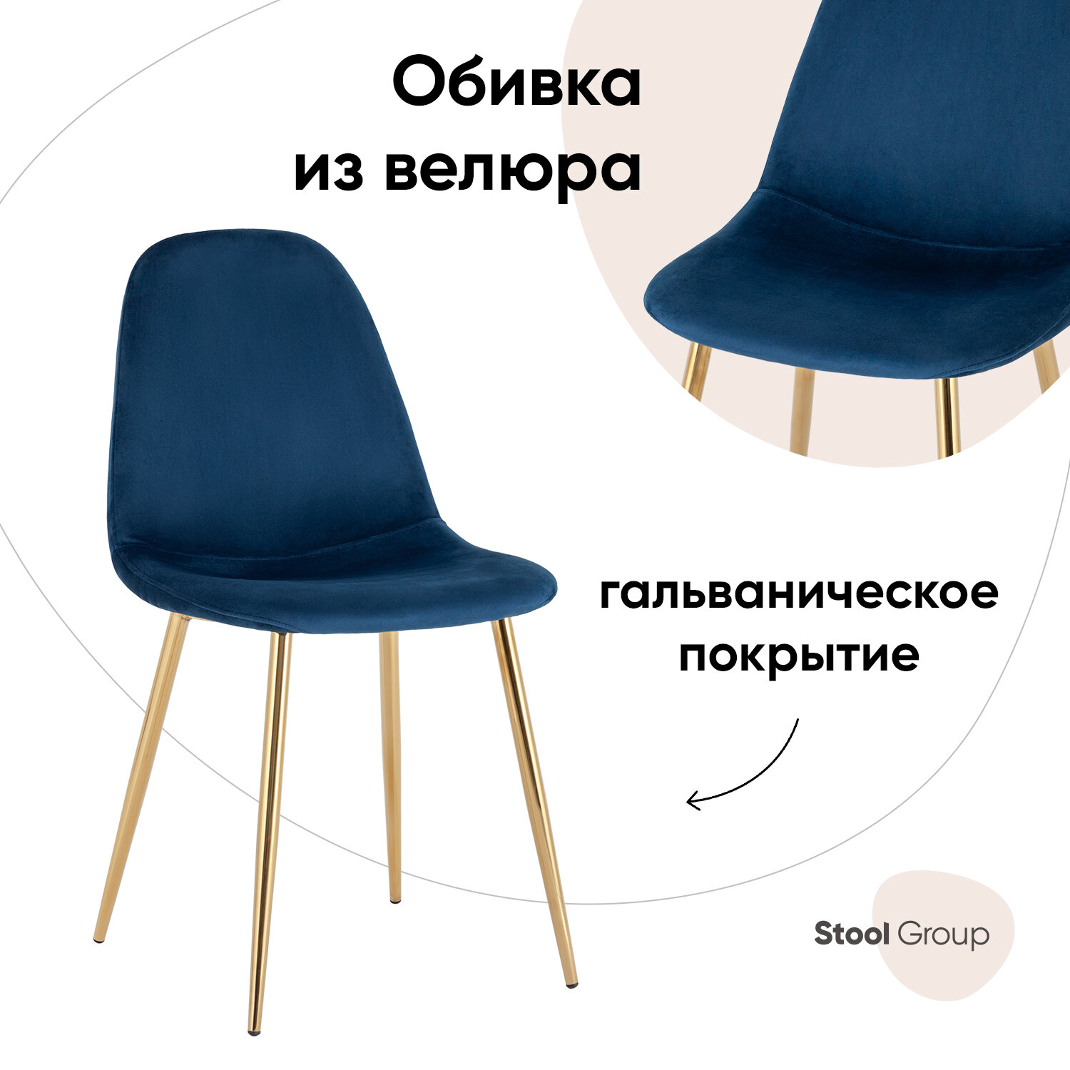 Комплект стульев для кухни Валенсия 4 шт, велюр синий NEW, золотые ножки