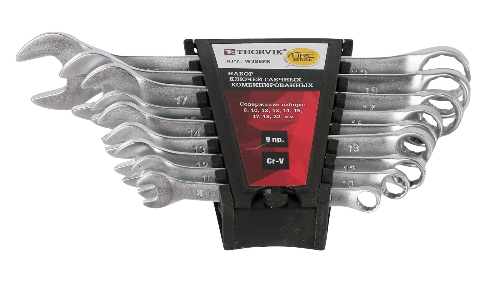 Купить Набор ключей Thorvik 9 предметов, комбинированные на держателе, 8-22 мм, W3S9PR