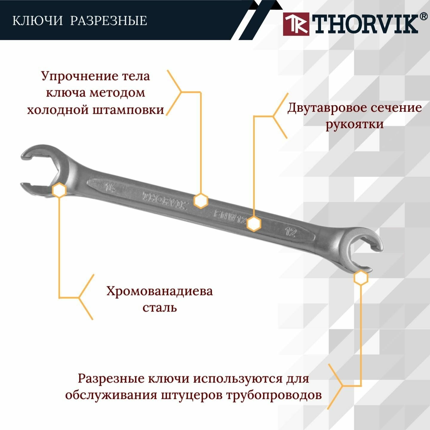 Набор ключей разрезных 8-19 мм FNWS005 Thorvik, 52055