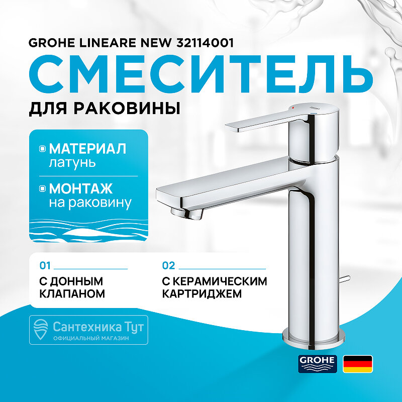 Смеситель для раковины Grohe Lineare, S-Size, хром (32114001)