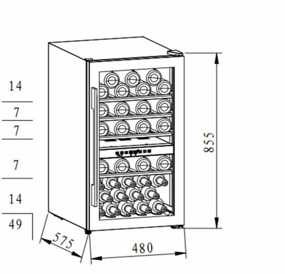 | Плюсы: | Вмещает 49 бутылок, хотя шкаф выглядит компактно