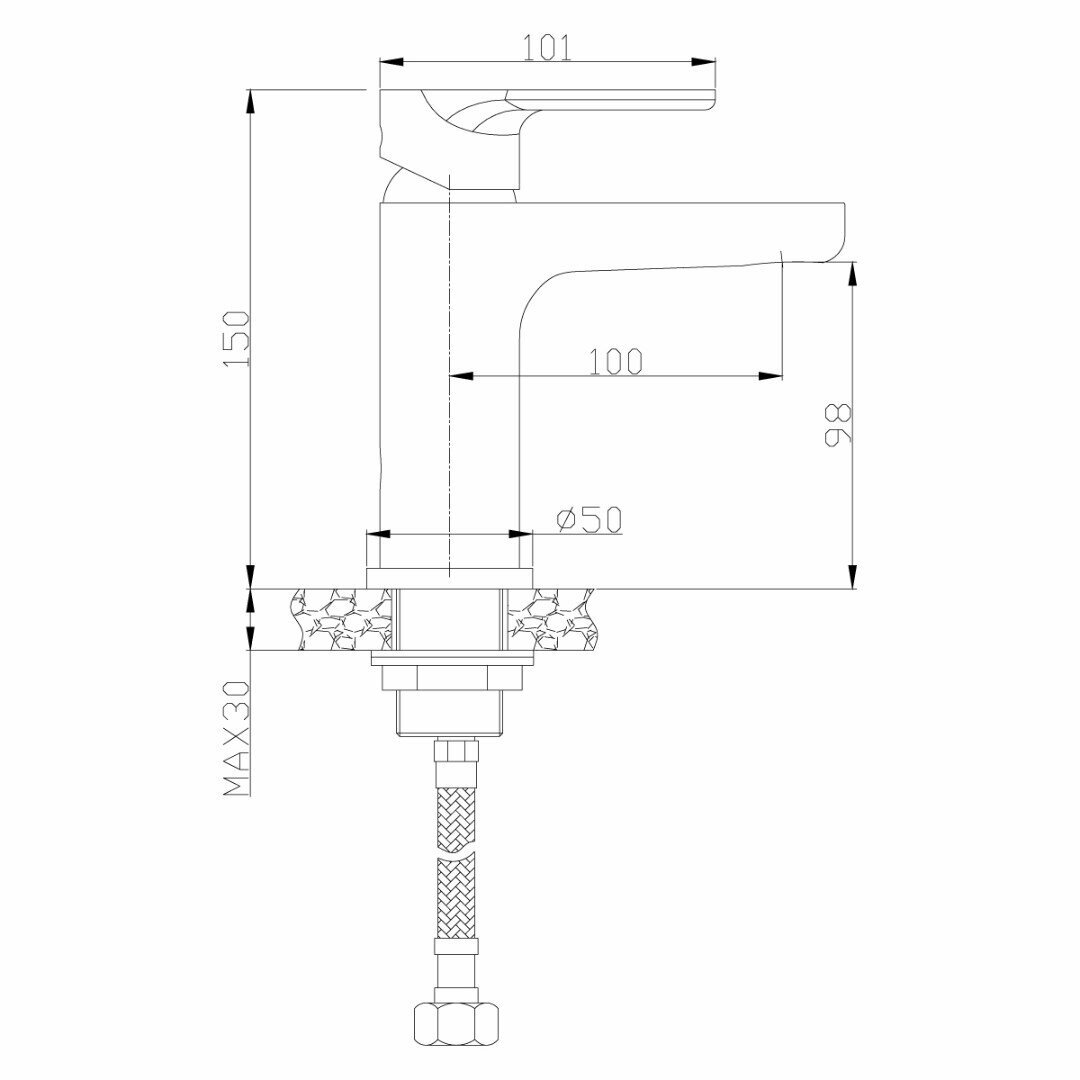 Смеситель для умывальника Rossinka RS33-11U одноручный (35 мм), монолитный, хром