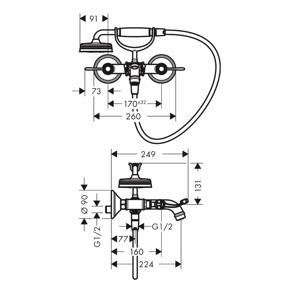 Смеситель для ванны с душевым набором Hansgrohe Montreux AX 16 551 820 интересное: