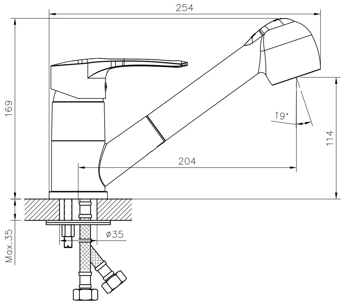 Купить Смеситель для кухни "Decoroom" DR70023 одноручный с вытяжным изливом, хром