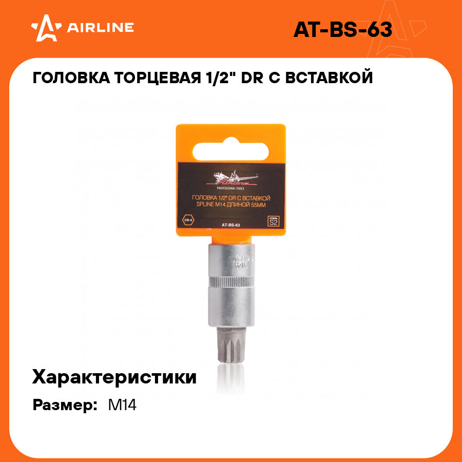 Головка 1/2 Dr С Вставкой Spline M14 Длиной 55мм (At-Bs-63) AIRLINE арт. ATBS63