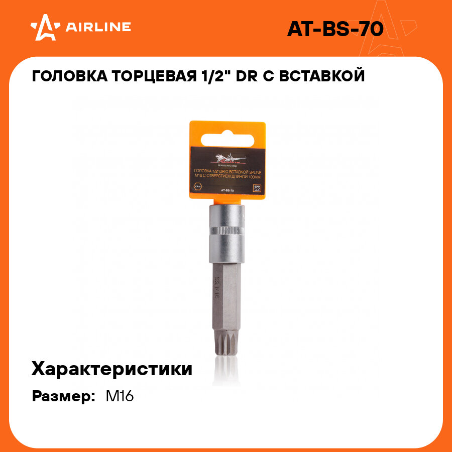 ATBS70 AIRLINE Головка 1/2 DR с вставкой SPLINE M16 длиной 100мм (AT-BS-70)