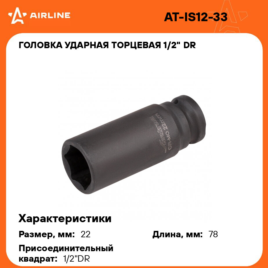 Купить Головка ударная торцевая 1/2" DR шестигранная 22мм L=78 мм AT-IS12-33 AIRLINE