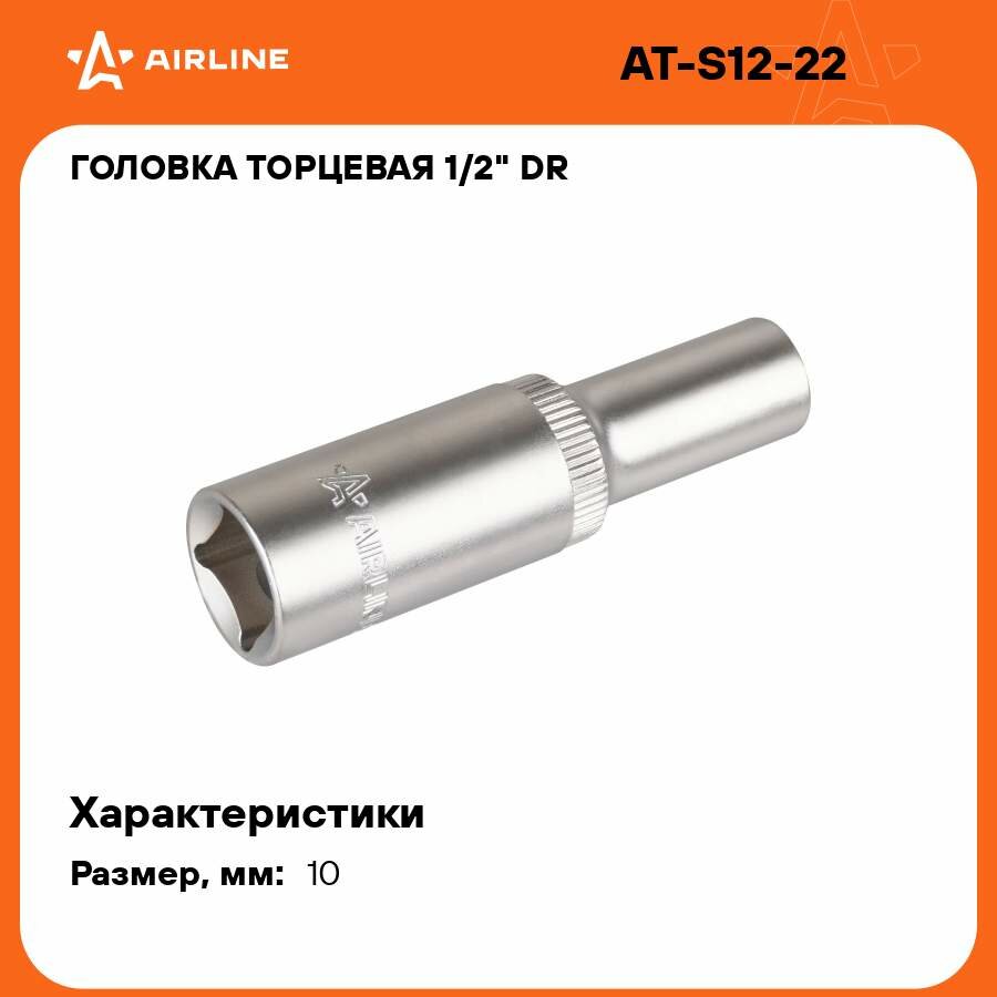 AIRLINE ATS1222 Головка торцевая 1/2" DR шестигранная 10мм глубокая (AT-S12-22)