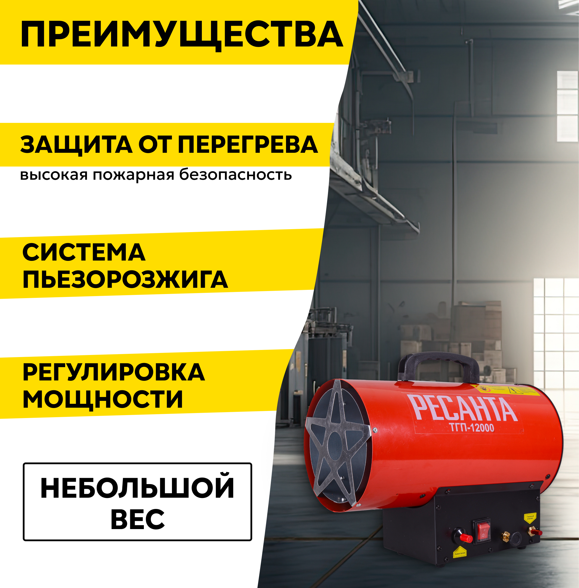 Купить Тепловая газовая пушка ТГП-12000 Ресанта, 7-12 кВт, до 120м2