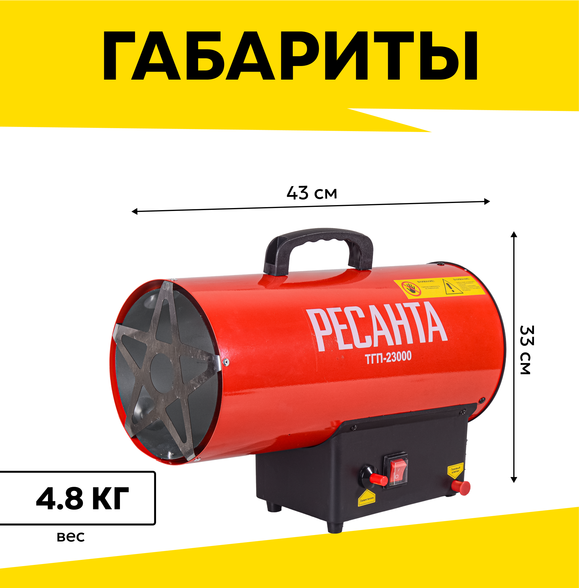 Купить Тепловая газовая пушка Ресанта ТГП-23000, тепловая мощность 23 кВт, максимальный поток 700 м3/ч