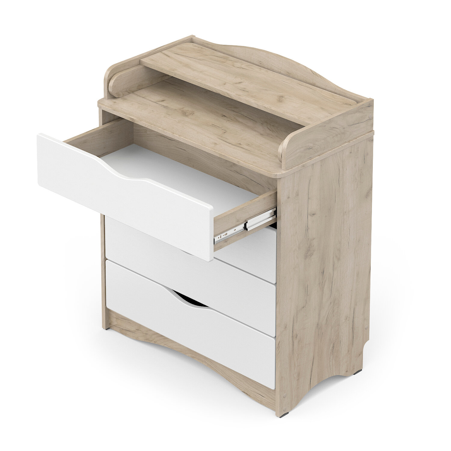 Детский пеленальный комод Атон Сириус 604 с ящиками и полкой, ЛДСП, бодега светлый, белый