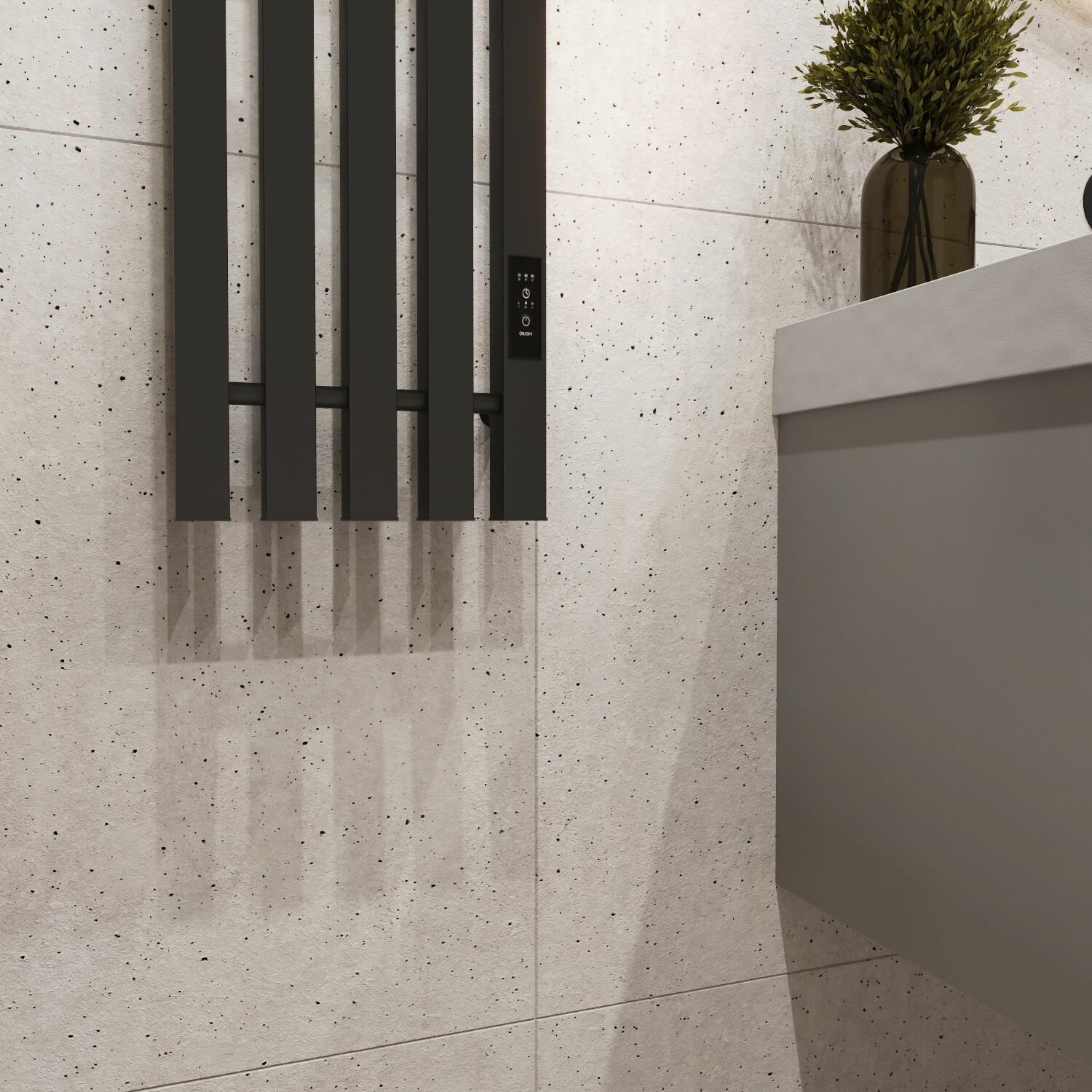 Полотенцесушитель электрический Маргроид профильный 1200мм 180мм правый скрытый монтаж черный матовый форма нестандартная