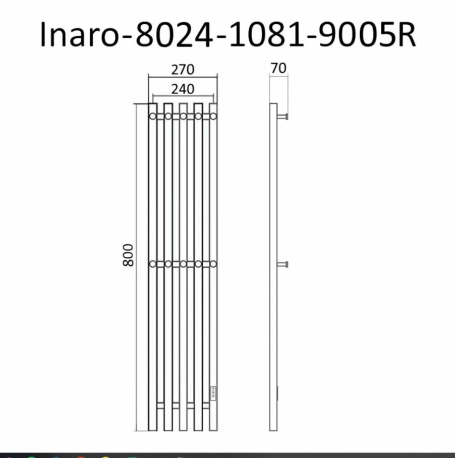 Полотенцесушитель электрический INARO 800х240 правый, скр.монтаж, СНШ, черный матовый(RAL 9005), (Ferrum, 10 крючков), Маргроид