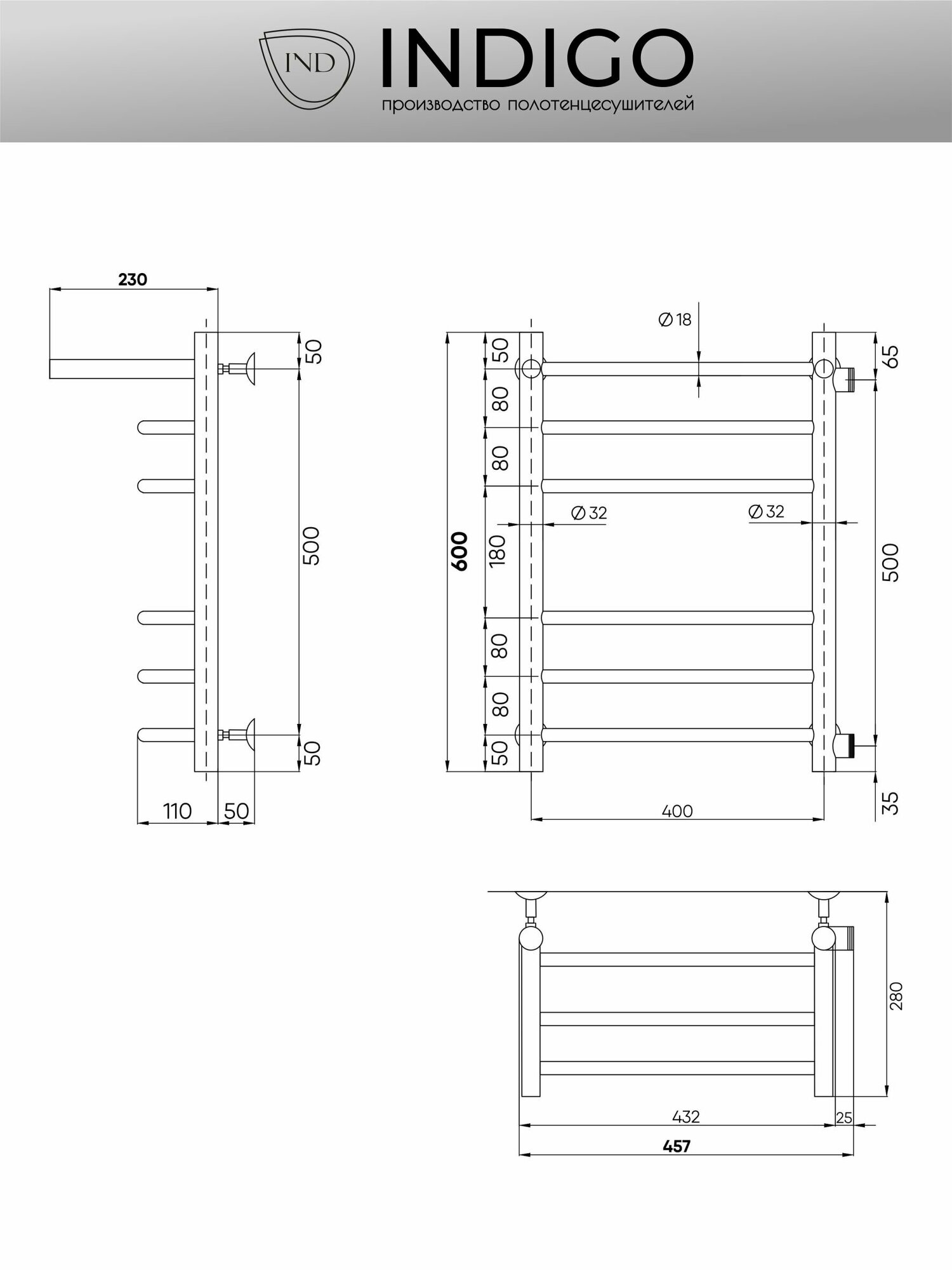 Полотенцесушитель Indigo® Brace LBCW60-40PBRR-б/п-50 интересное: