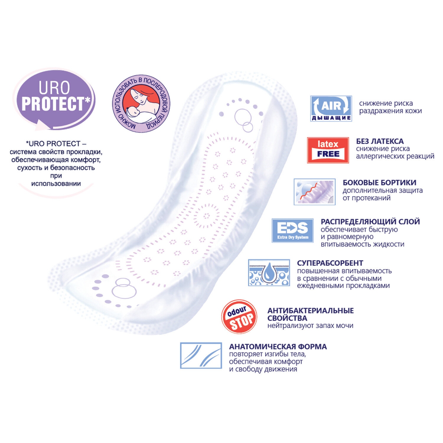 | Дополнительная информация | отсутствие латекса в элементах прокладки, 3 клеевые полосы, распределяющий слой EDS, «дышащий» внешний слой, анатомическая форма |