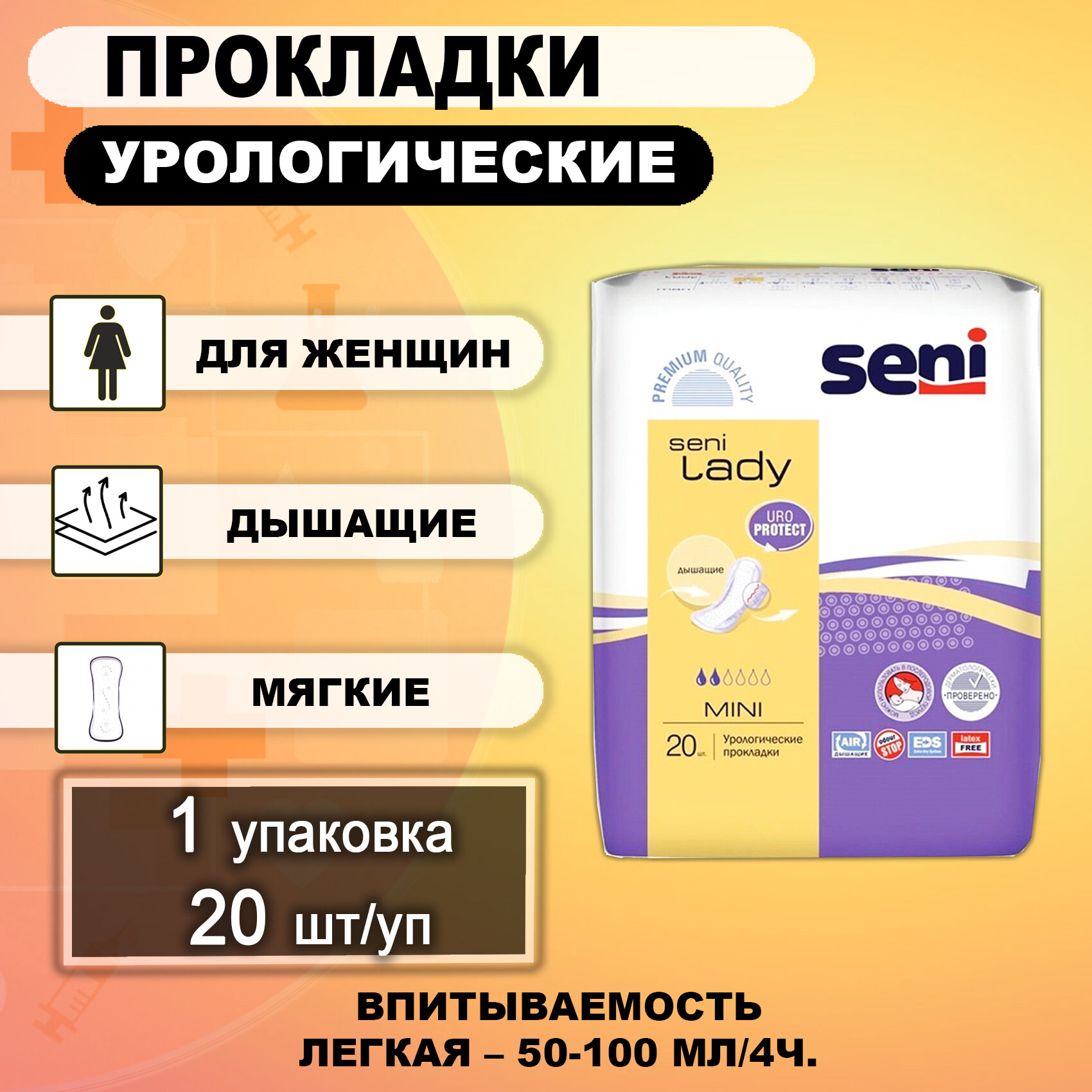 Урологические прокладки для женщин SENI LADY Mini, 20 шт./уп.