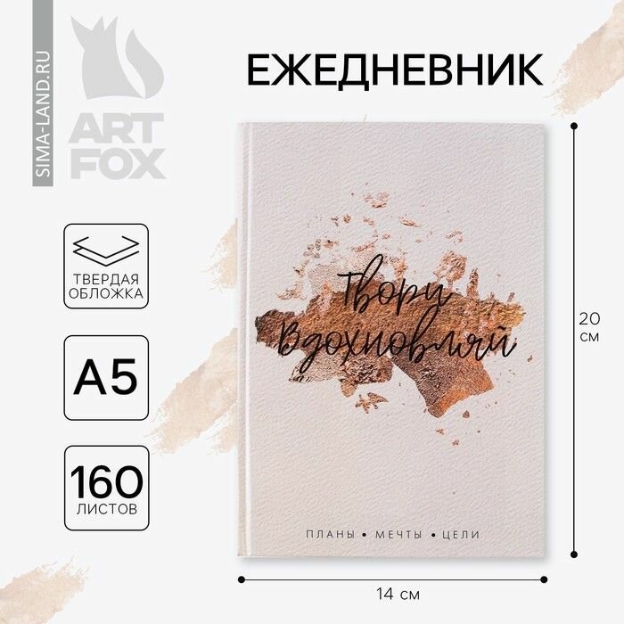 Купить Ежедневник в твердой обложке А5, 160 листов «Твори. Вдохновляй»