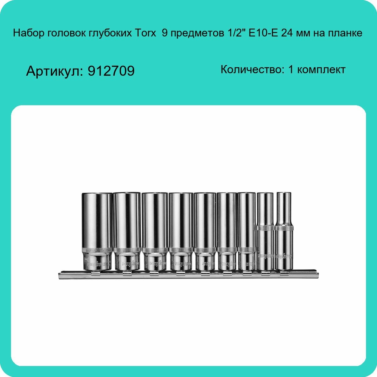 912709 Набор головок торцевых глубоких 1/2"DR на держателе, внешний TORX®, E10-E24, 9 предметов.OMBRA