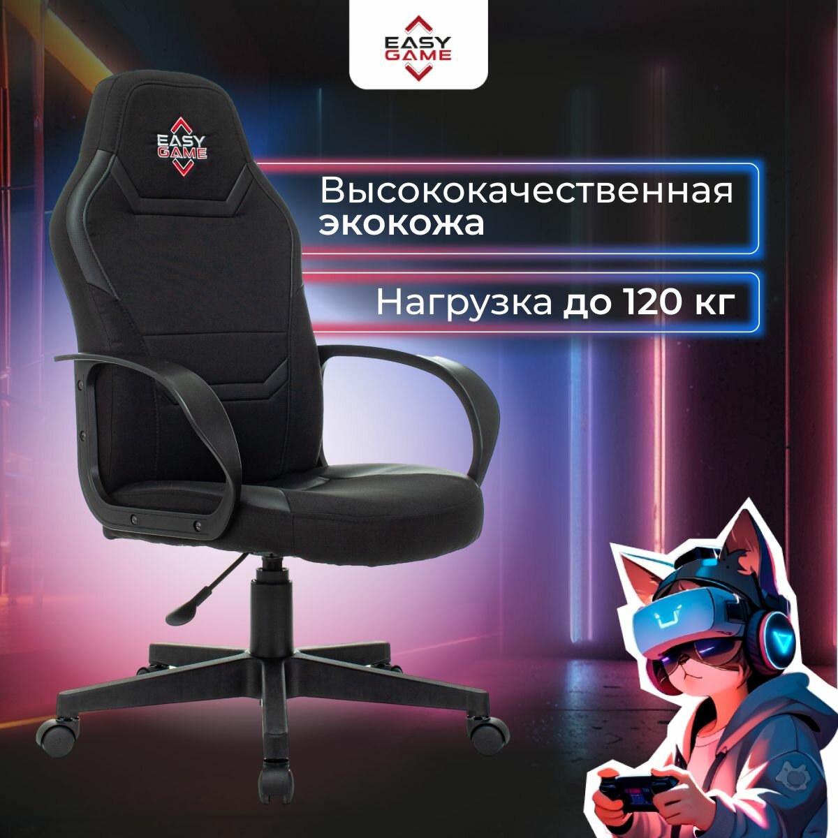 Кресло компьютерное Easy Game игровое, с подлокотниками, экокожа/ткань, крестовина из пластика, черный