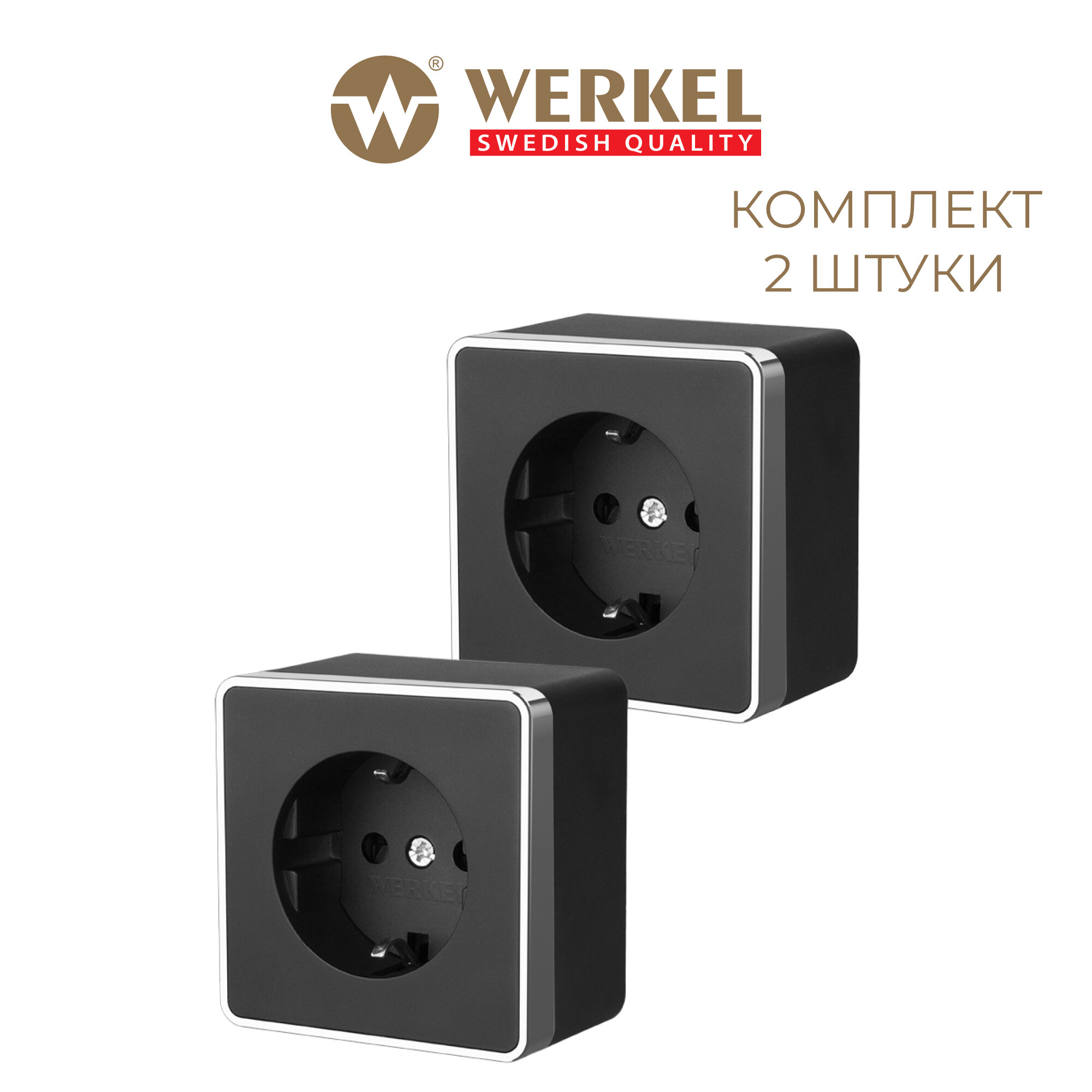 Розетка накладная с заземлением Werkel Gallant W5071035 черный / хром, IP20 - комплект 2 шт.
