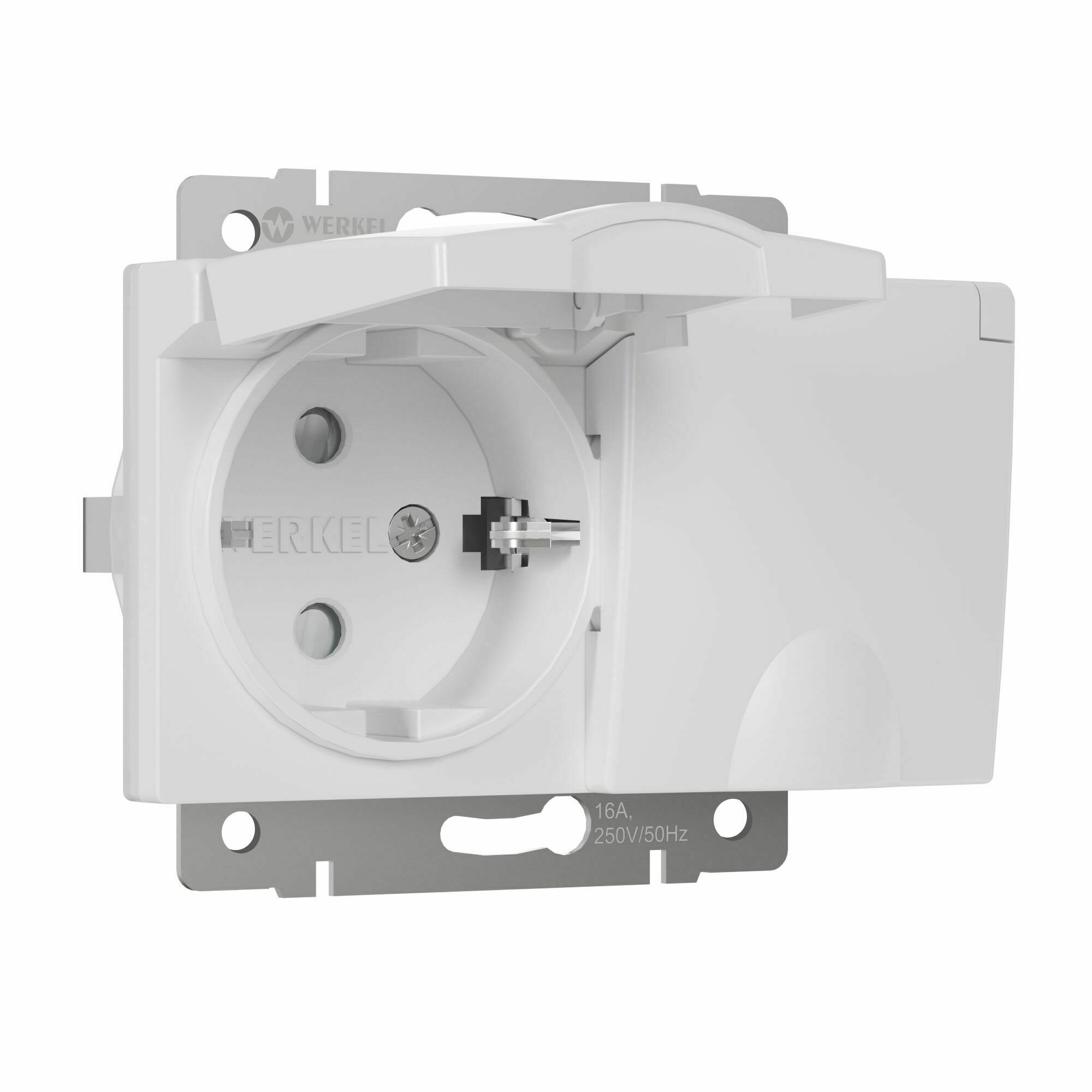 Розетка Werkel W1171201 (a051120) скрытая установка белая с заземлением IP44 со шторками с крышкой