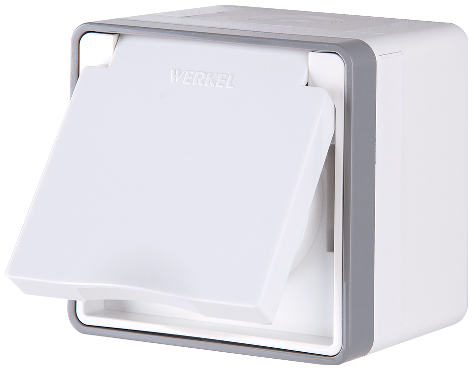Розетка WERKEL W5071201 влагозащищенная, с заземлением с защитной крышкой и шторками Gallant белая a051568