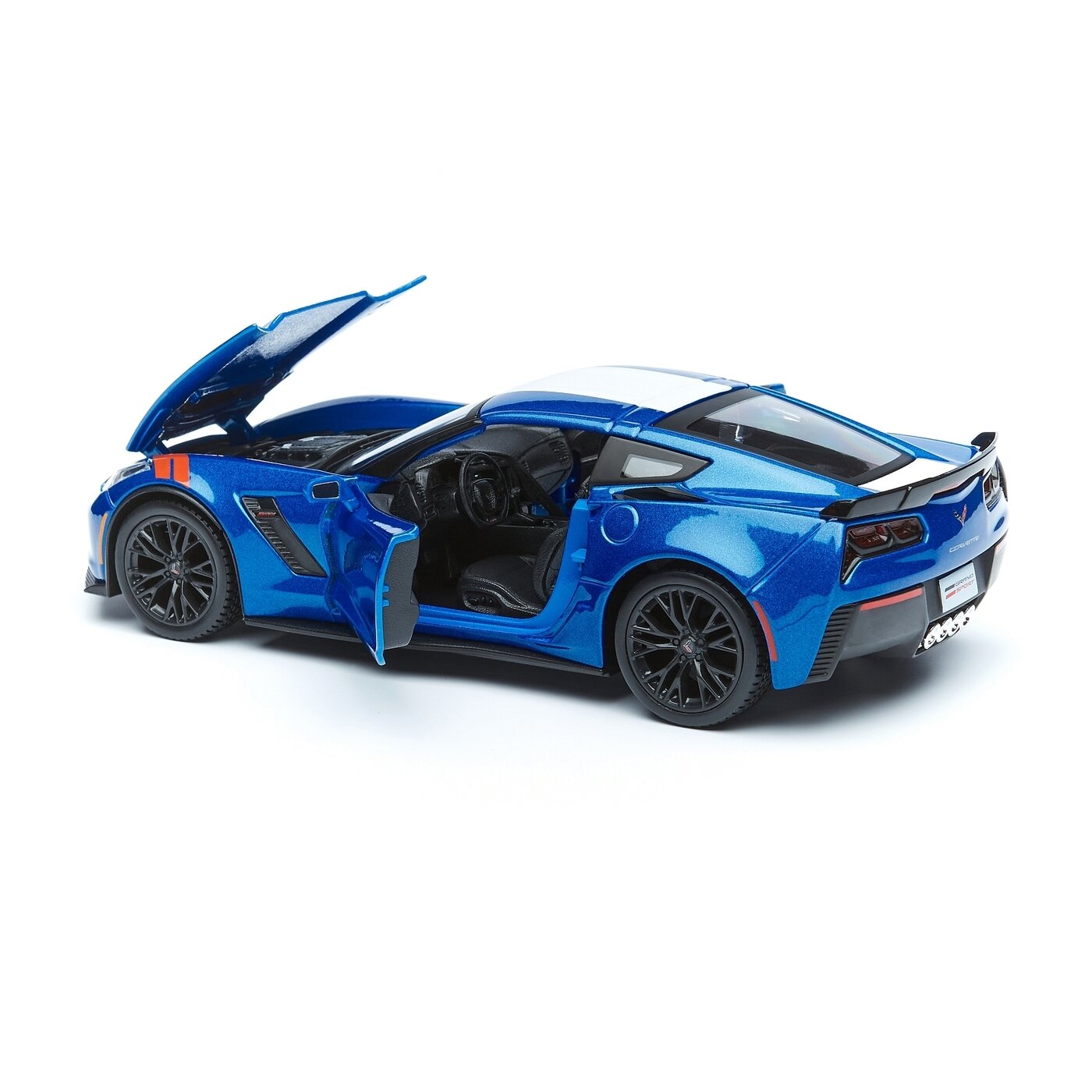 Купить Машинка металлическая Chevrolet Corvette Grand Sport 2014, открывающиеся двери и капот, вращающиеся резиновые колеса, масштабная коллекционная модель Maisto 1:24, синяя, Шевролет