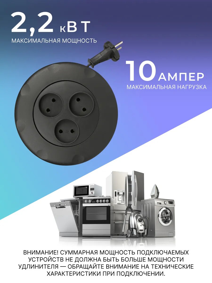 | Отзыв: | Компактный. Кабель не путается. Удобно использовать как дежурный удлинитель/тройник. |