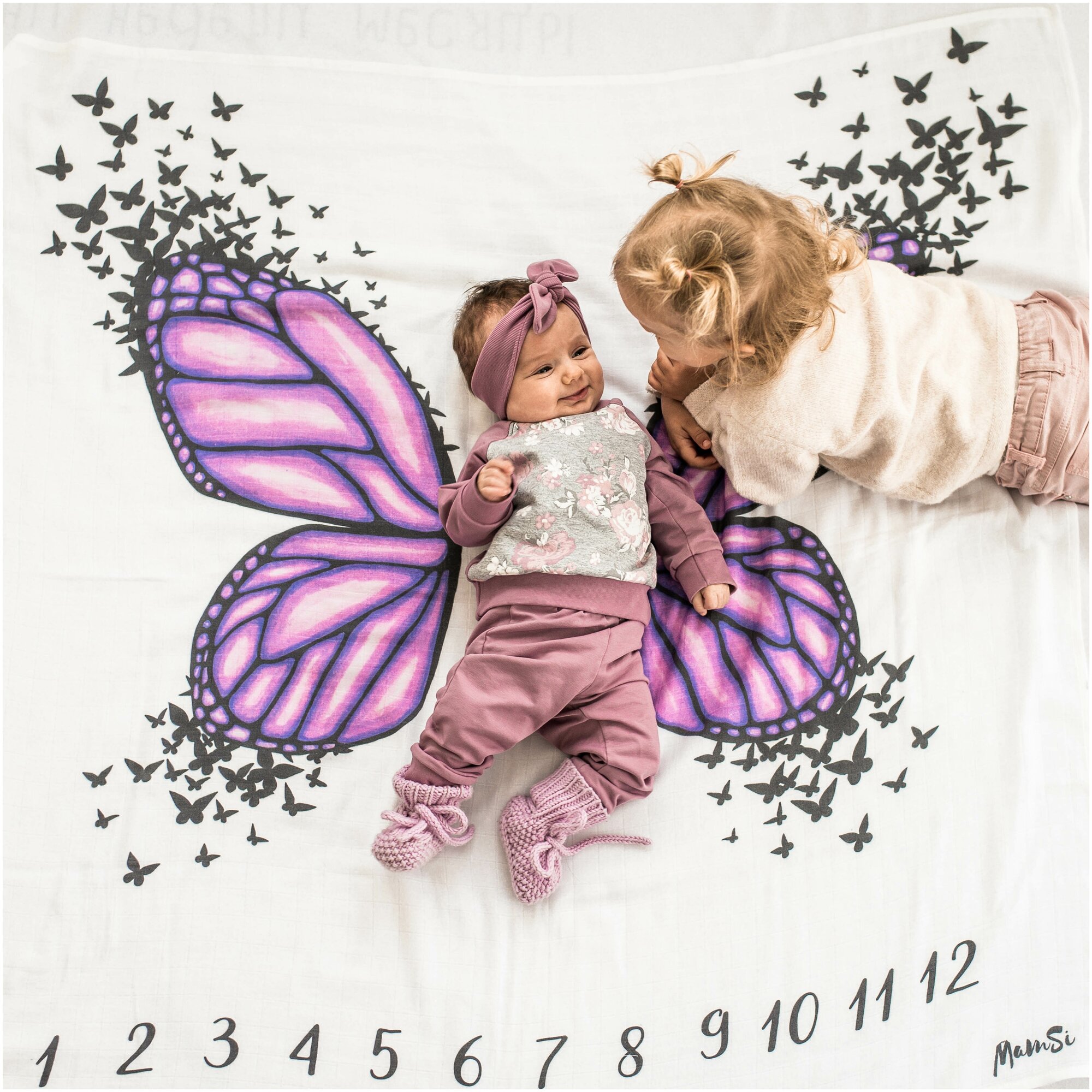 Муслиновая пеленка 120х120 см / детский фотофон / фотопеленка / Цифры