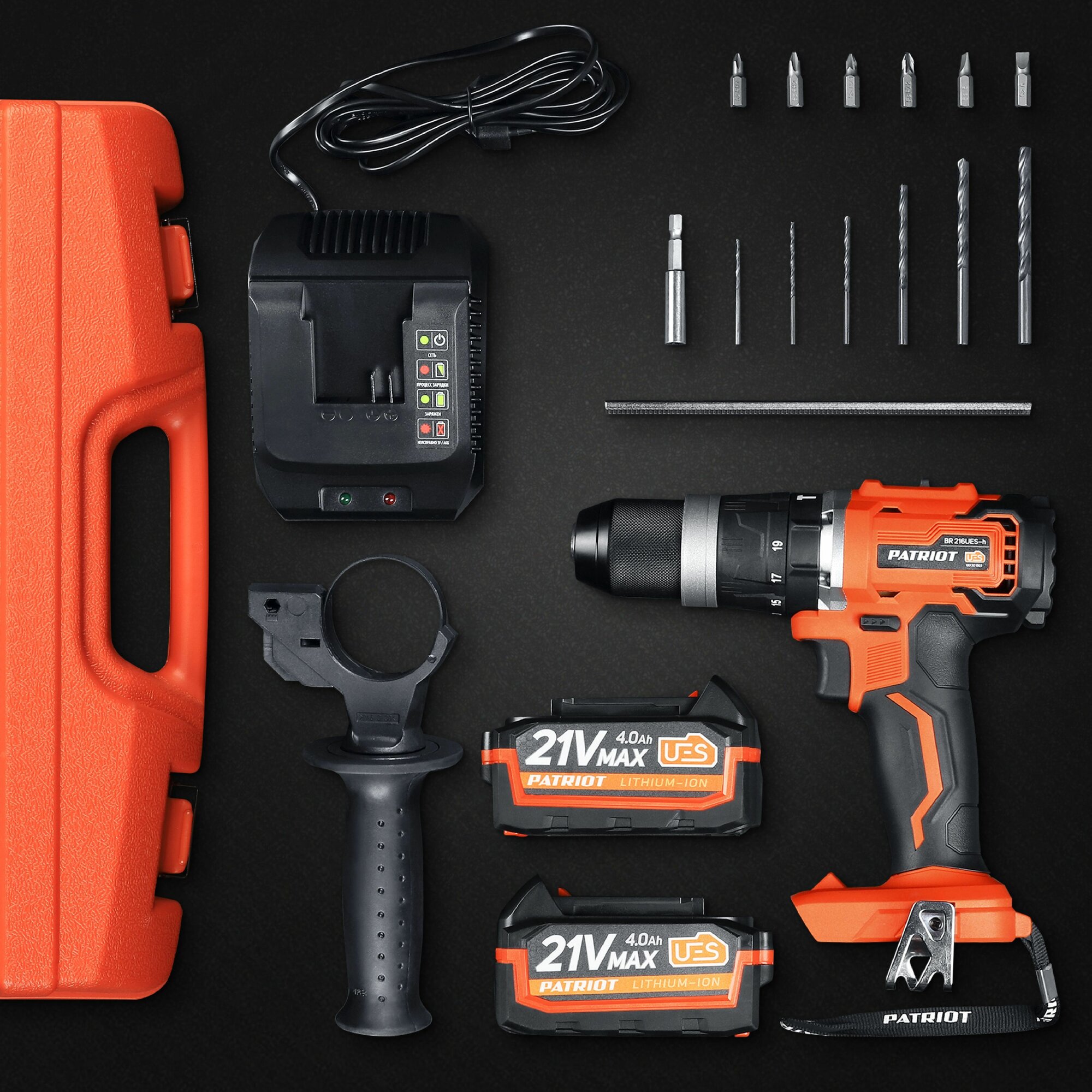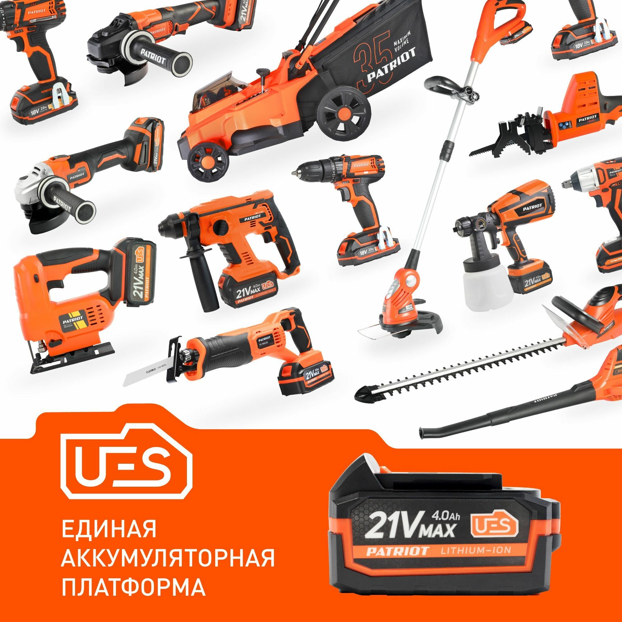 Дрель-шуруповерт аккумуляторная PATRIOT BR 216UES-h, 21 V, комплект бит и сверл, ограничитель глубины