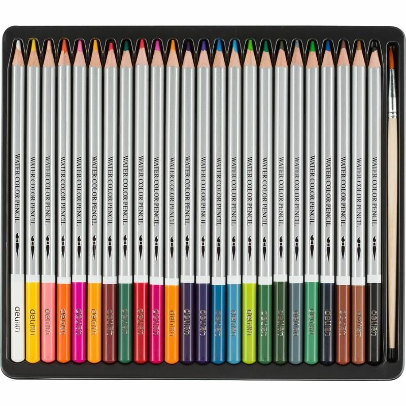 Карандаши акварельные Deli липа 24 цв/наб мет.кор. 6521