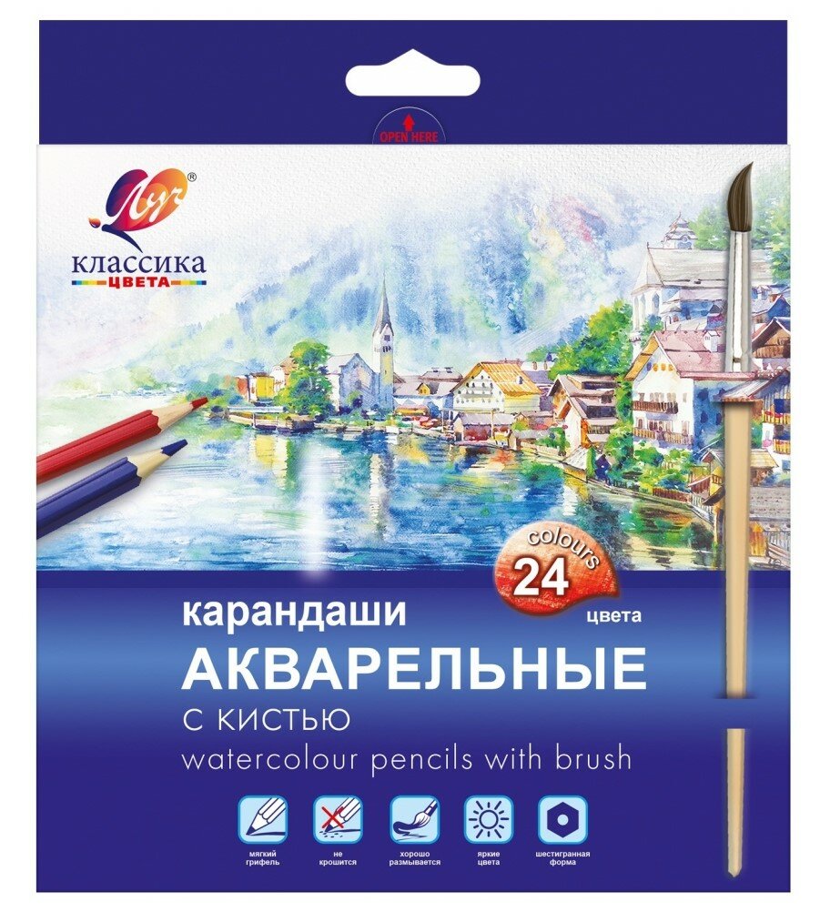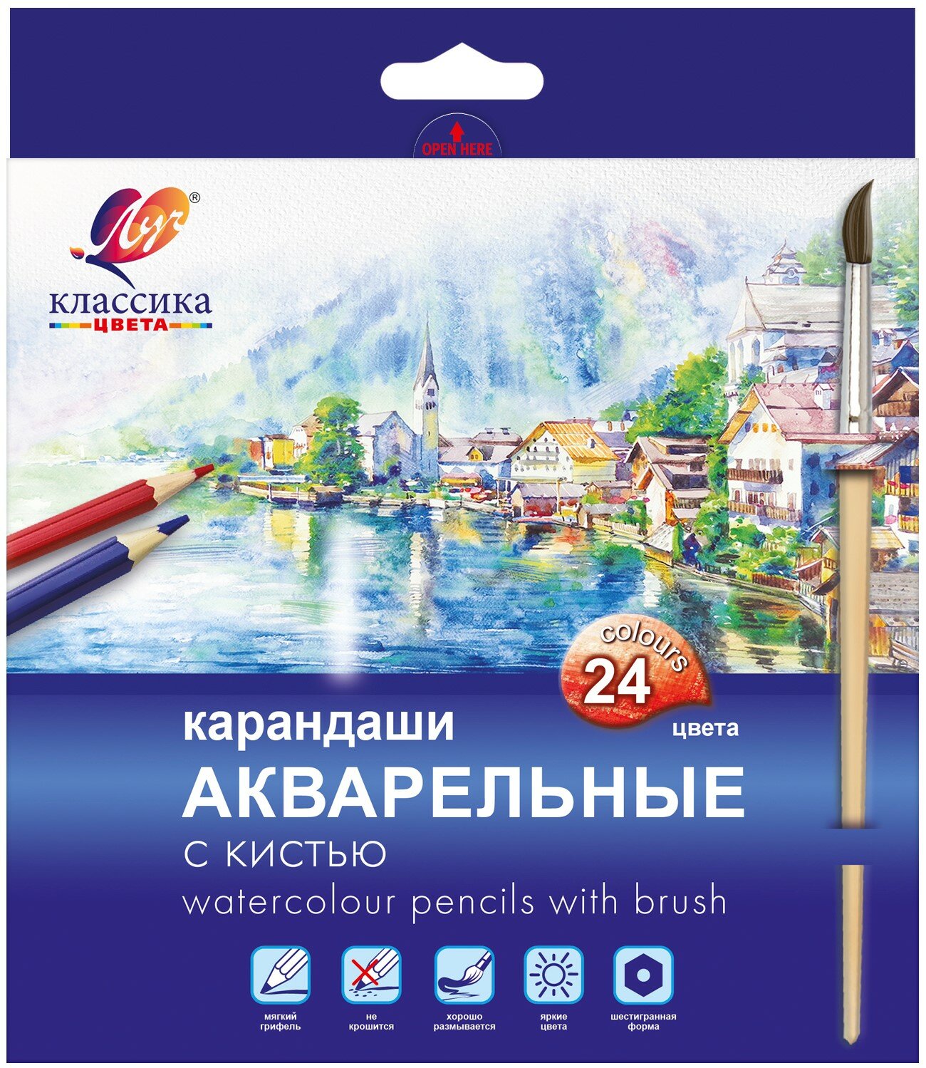 Купить Луч Набор акварельных карандашей, Классика Цвета, шестигранные с кистью, 24 цветов