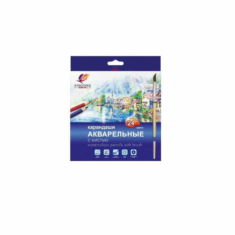 Карандаши цветные акварельные (ЛУЧ) 24 цвета Классика цвета с кистью арт.32С 2092-08