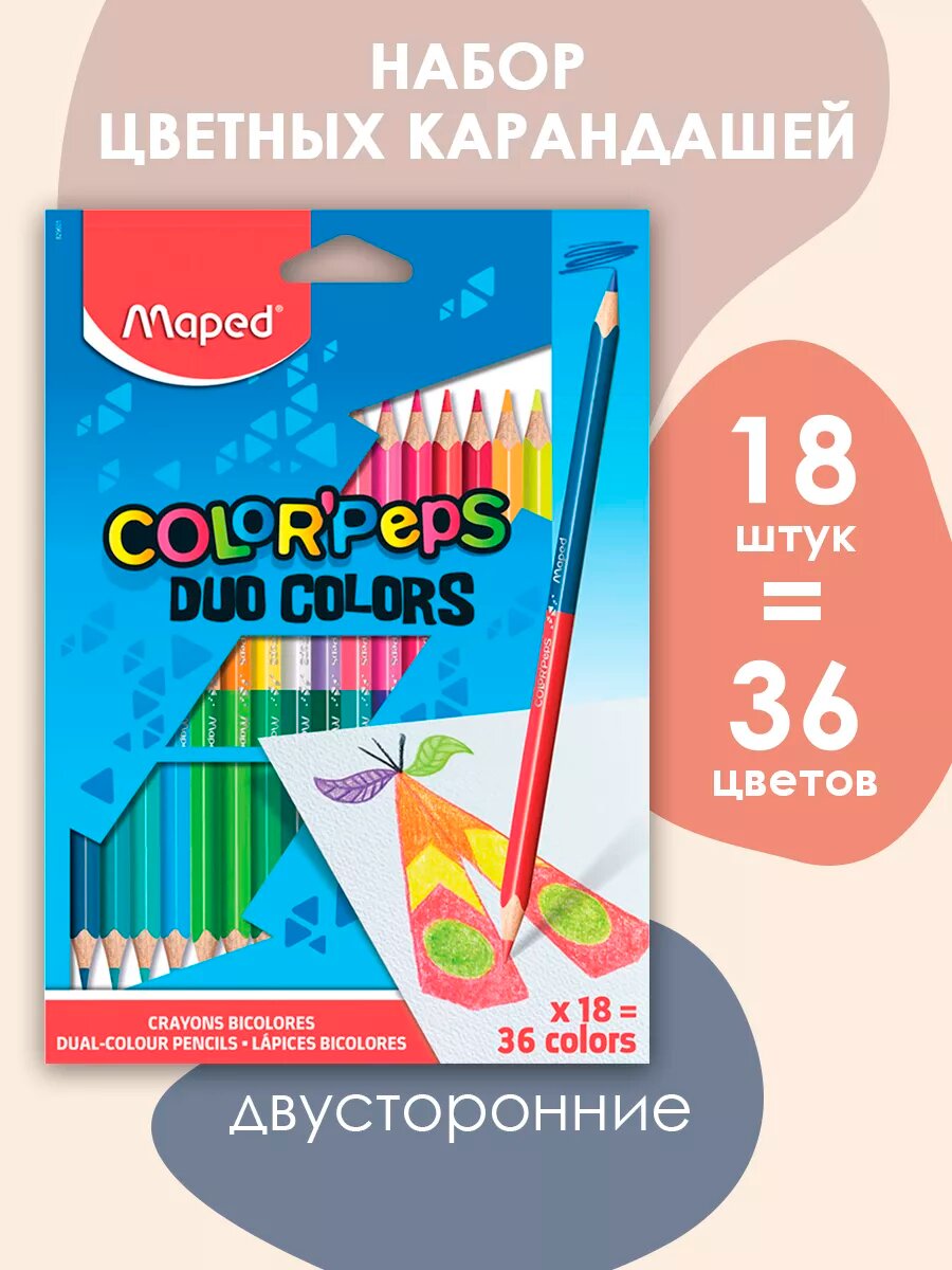 Карандаши цветные Maped "Color Peps" двусторонние, 36 цветов, 18 шт., трехгранные, заточенные