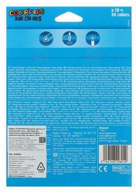 Maped. Карандаши цветные "Color'Peps Duo" двусторонние (18 шт 36 цв.) арт.829601