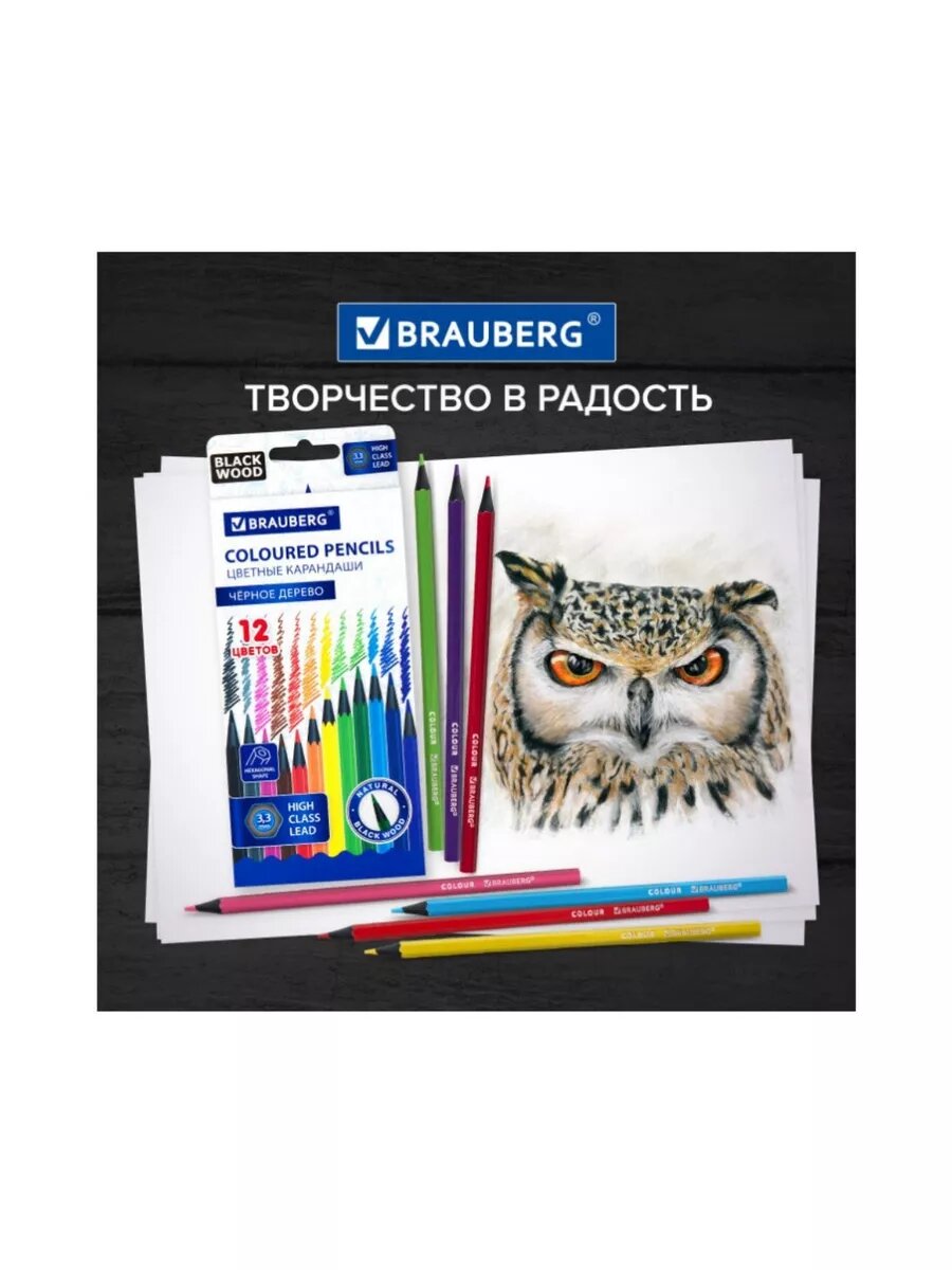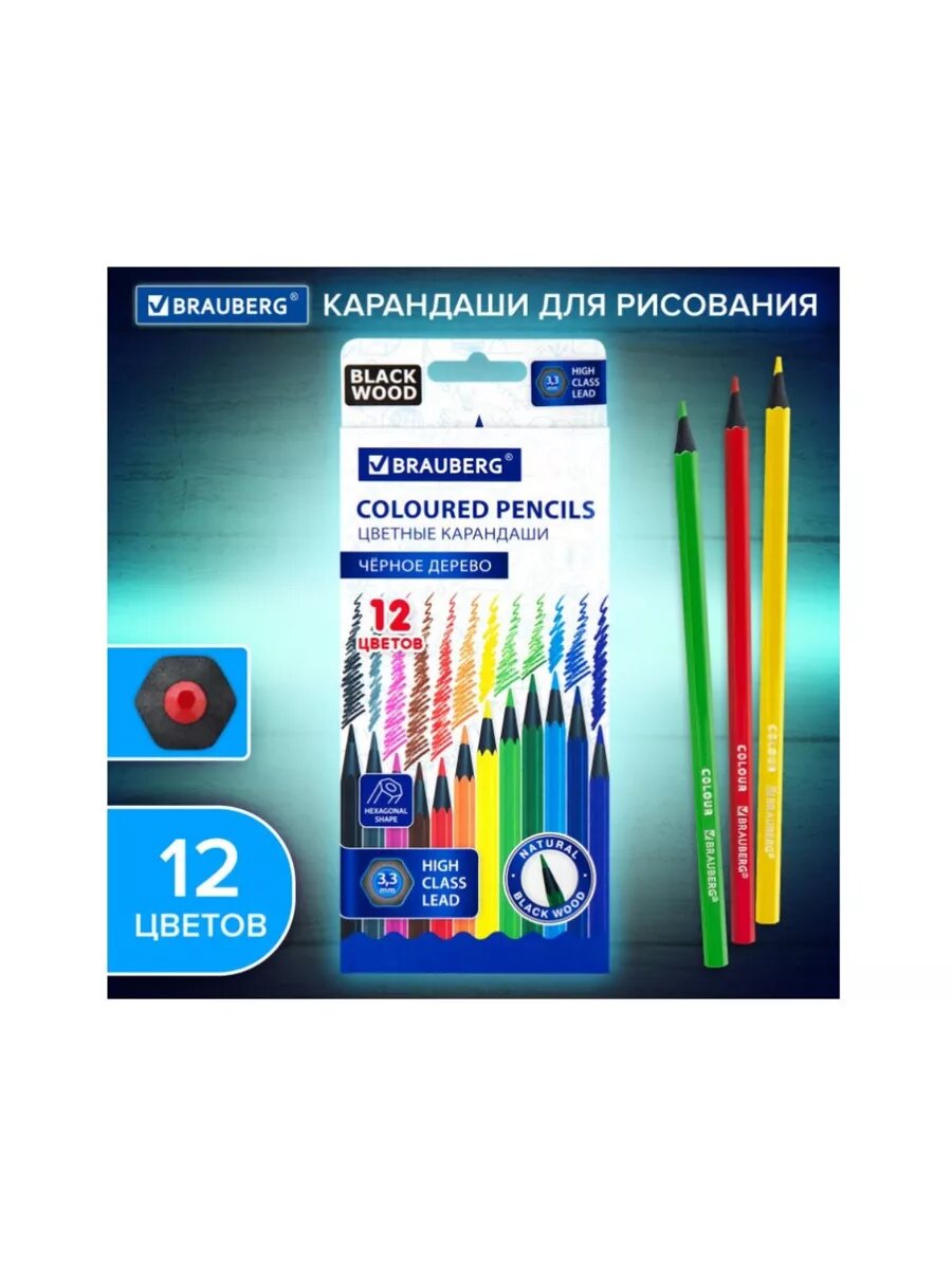 Карандаши деревянные цветные для рисования Brauberg Premium, 24 цвета, трехгранные, грифель мягкий 3,3 мм, 181653