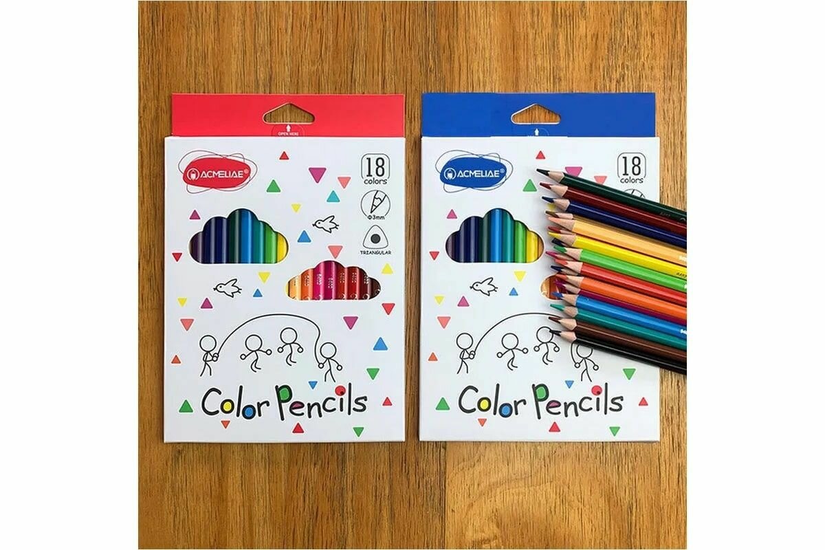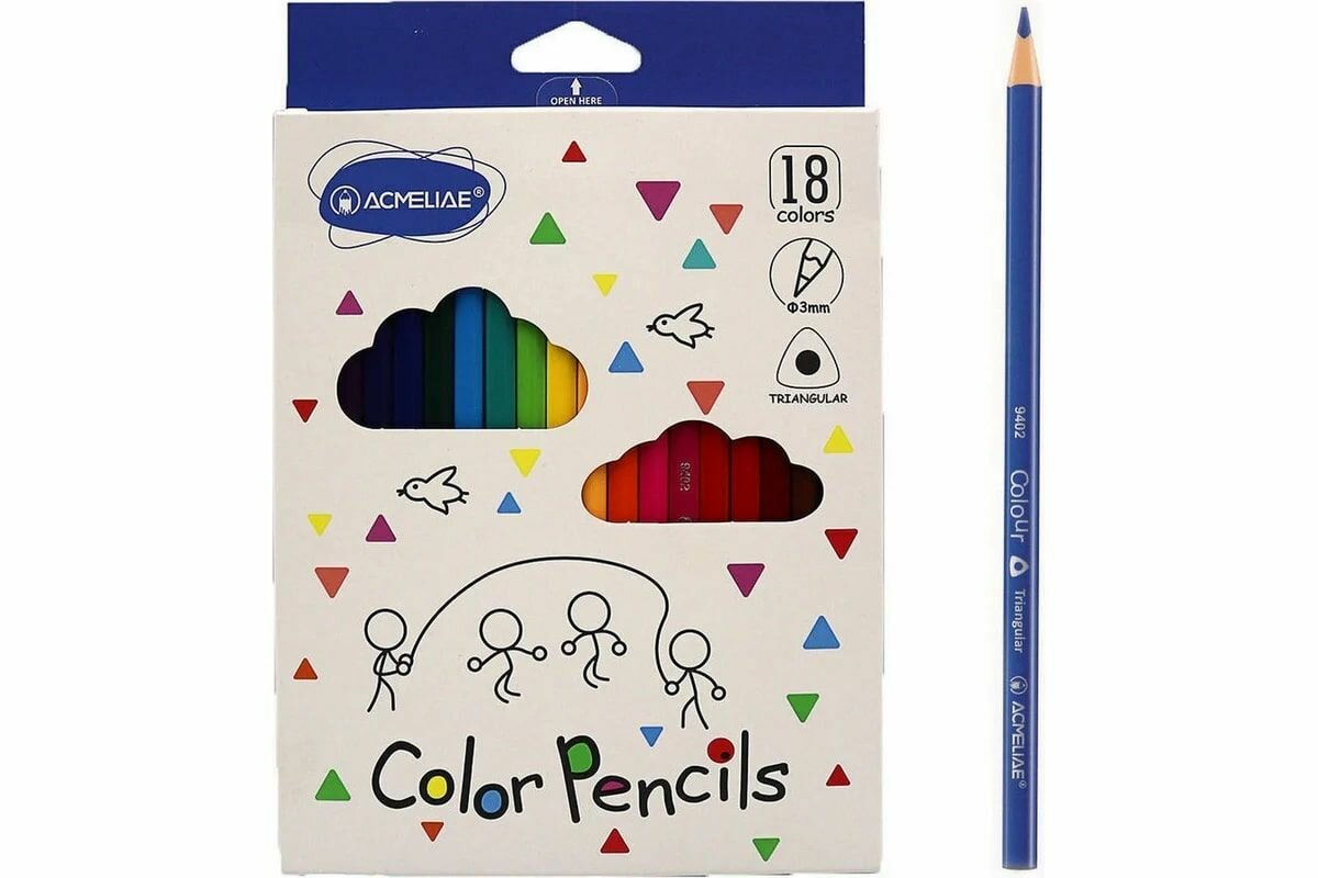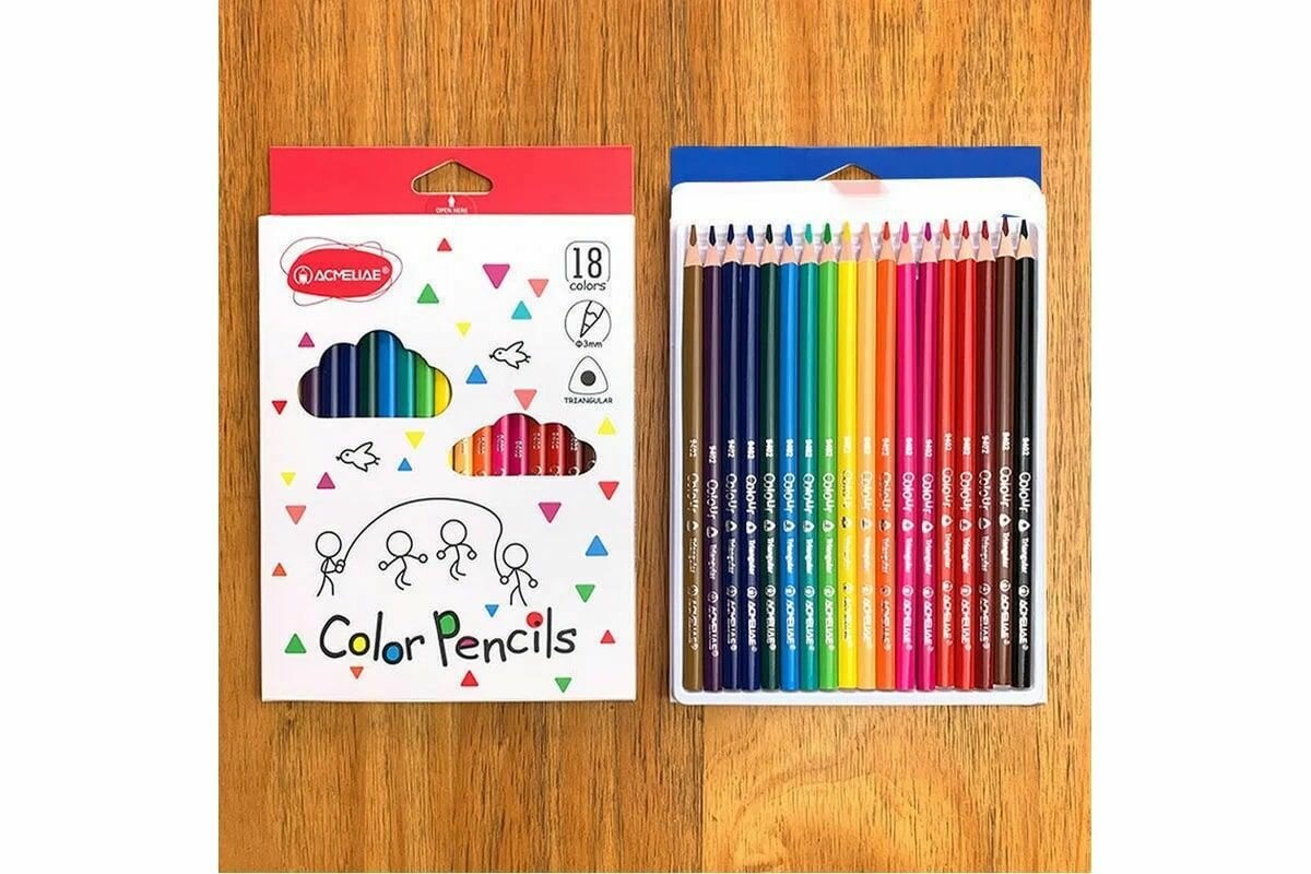 Набор цветных трехгранных карандашей ACMELIAE 18цв. в картонном футляре интересное: