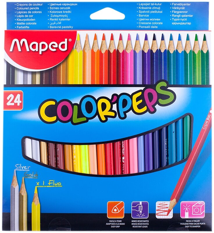 Купить Цветные карандаши Maped "Color Peps", 24 оттенка, трехгранные ударопрочные