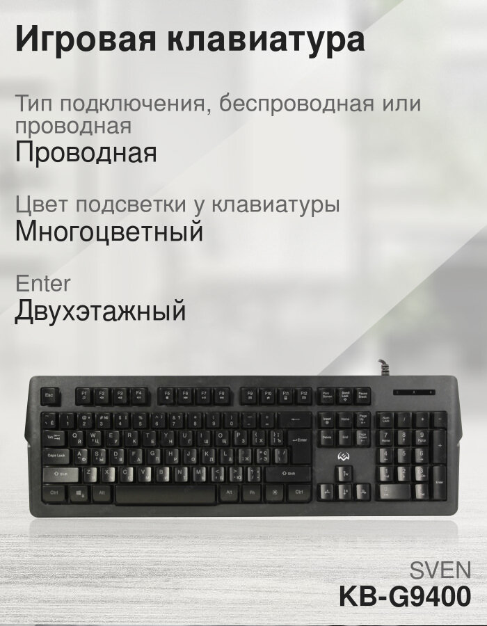 Клавиатура Sven KB-G9400 Black 104КЛ подсветка клавиш .