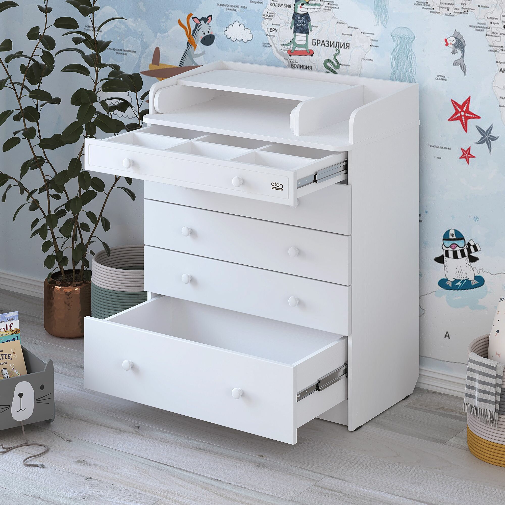 Комод пеленальный Атон Baby Master Elio древесина белая-белый софт