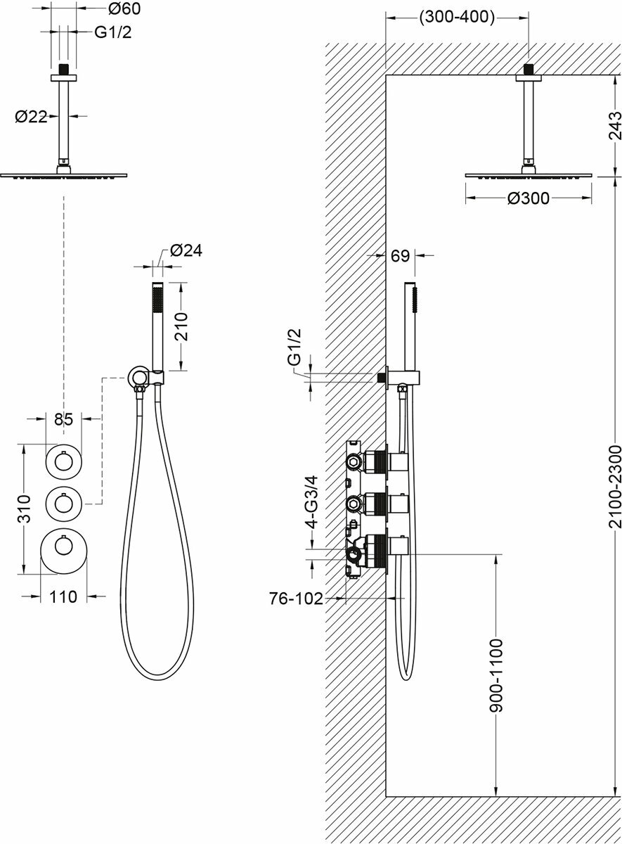 Душевая система встроенная с термостатом Timo Saona SX-2399/03SM черный