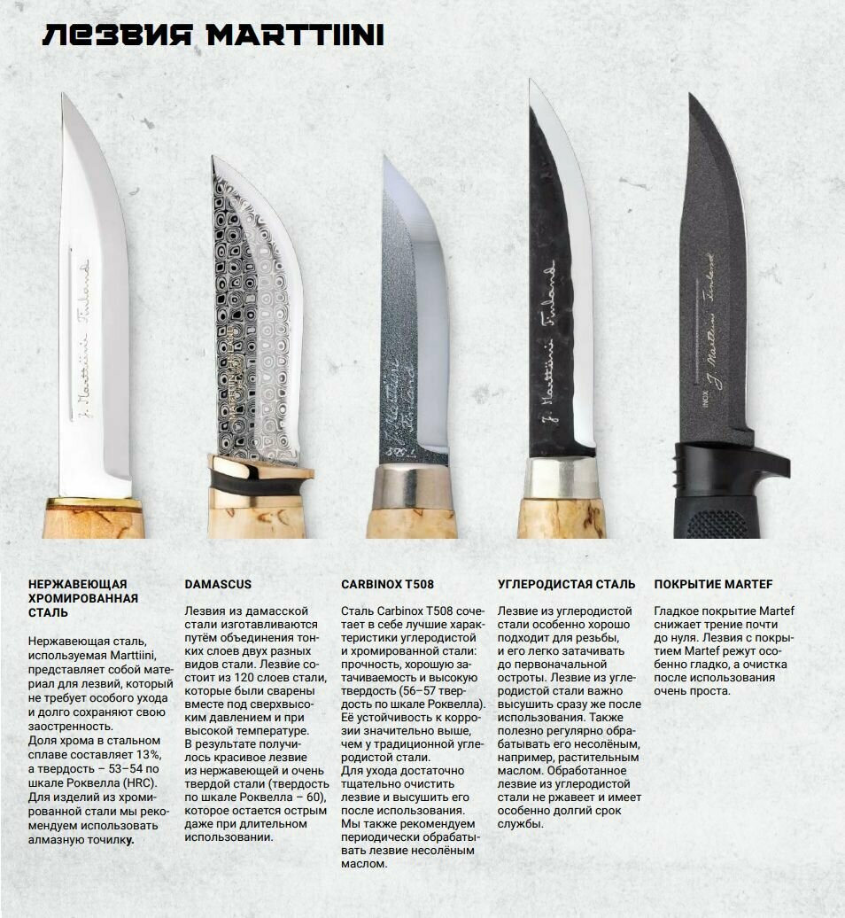 | Дополнительная информация | материал рукояти: вощеная карельская береза; ручная работа; каждый нож имеет серийный номер и год производства; марка стали: 420; твердость стали, HRC: 53-54; чехол в комплекте |