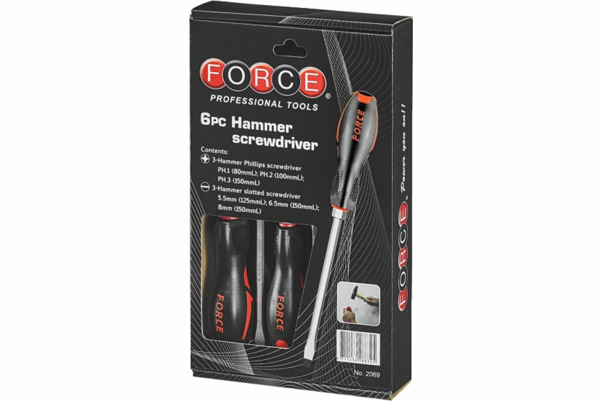 FORCE 2069 Набор ударных отверток 6пр интересное:
